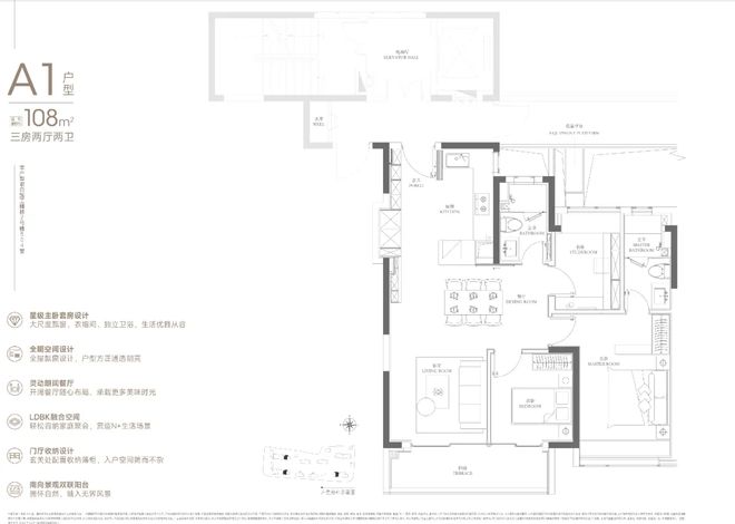 188户型2梯2户,有独立的电梯厅。4房3卫设计,还是3明卫,这两点还是不错的。
