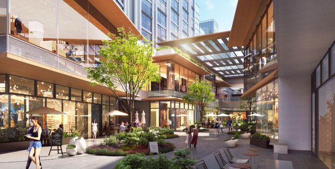 通过轨道交通站点+垂直商业体系和办公空间的组合设计,让交通和商业体验紧密结合完成真正一站式的城市体验。