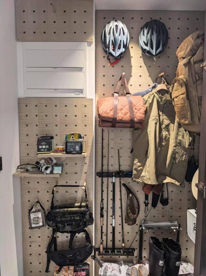 入户门厅也非常讲究,定制级的玄关柜,包括鞋柜+收纳柜+卡座+衣帽区,整齐有序。