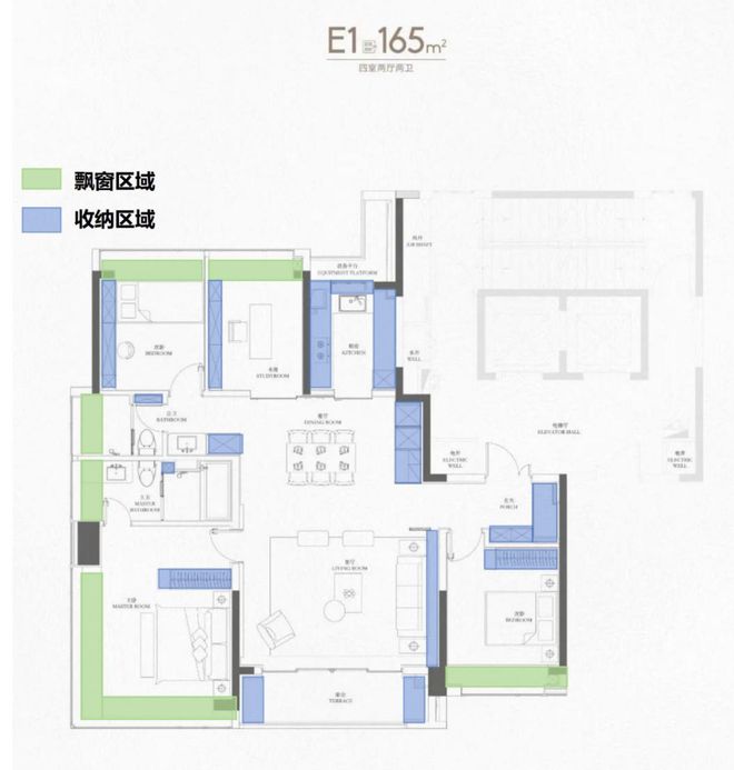 来到165㎡个户型,已经上升到上海主流的大户型改善面积段,但看设计思路,可以看出是为满足多胎家庭成长而服务的。